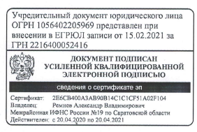 1.5. Почтовый адрес: 413360 Саратовская область, г. Новоузенск, ул. Советская , 7 «Б» .